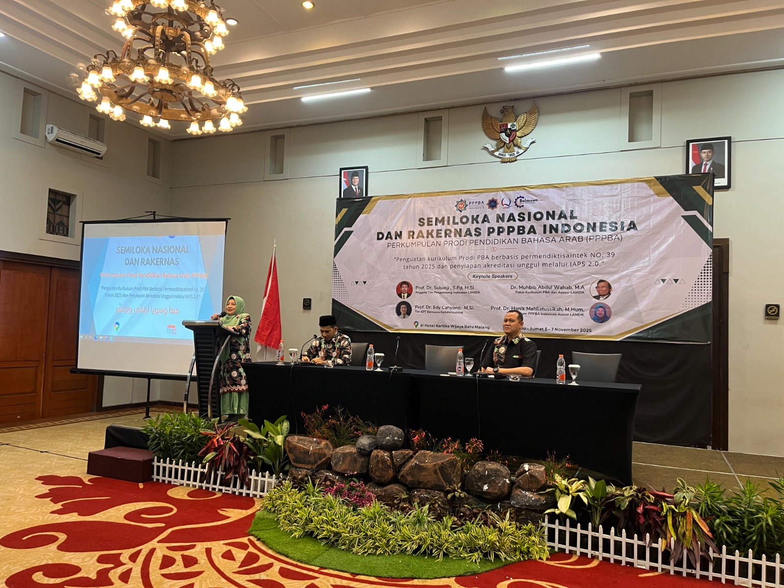 Program Studi Pendidikan Bahasa Arab (PBA) UIN Kiai Ageng Muhammad Besari Ponorogo berpartisipasi dalam kegiatan Semiloka dan Rapat Kerja Nasional (Rakernas) yang diselenggarakan oleh Perkumpulan Program Studi Pendidikan Bahasa Arab (PPPBA). Acara ini dilaksanakan selama tiga hari, mulai Rabu hingga Jum’at, 5–7 November 2025, bertempat di éL Hotel Kartika Wijaya, Kota Batu, Jawa Timur. Mengusung tema “Penguatan Kurikulum Prodi PBA Berbasis Permendiktisaintek Nomor 39 Tahun 2025 dan Penyiapan Akreditasi Unggul melalui IAPS 2.0,” kegiatan ini dihadiri oleh perwakilan Program Studi Pendidikan Bahasa Arab dari berbagai perguruan tinggi dari seluruh Indonesia.